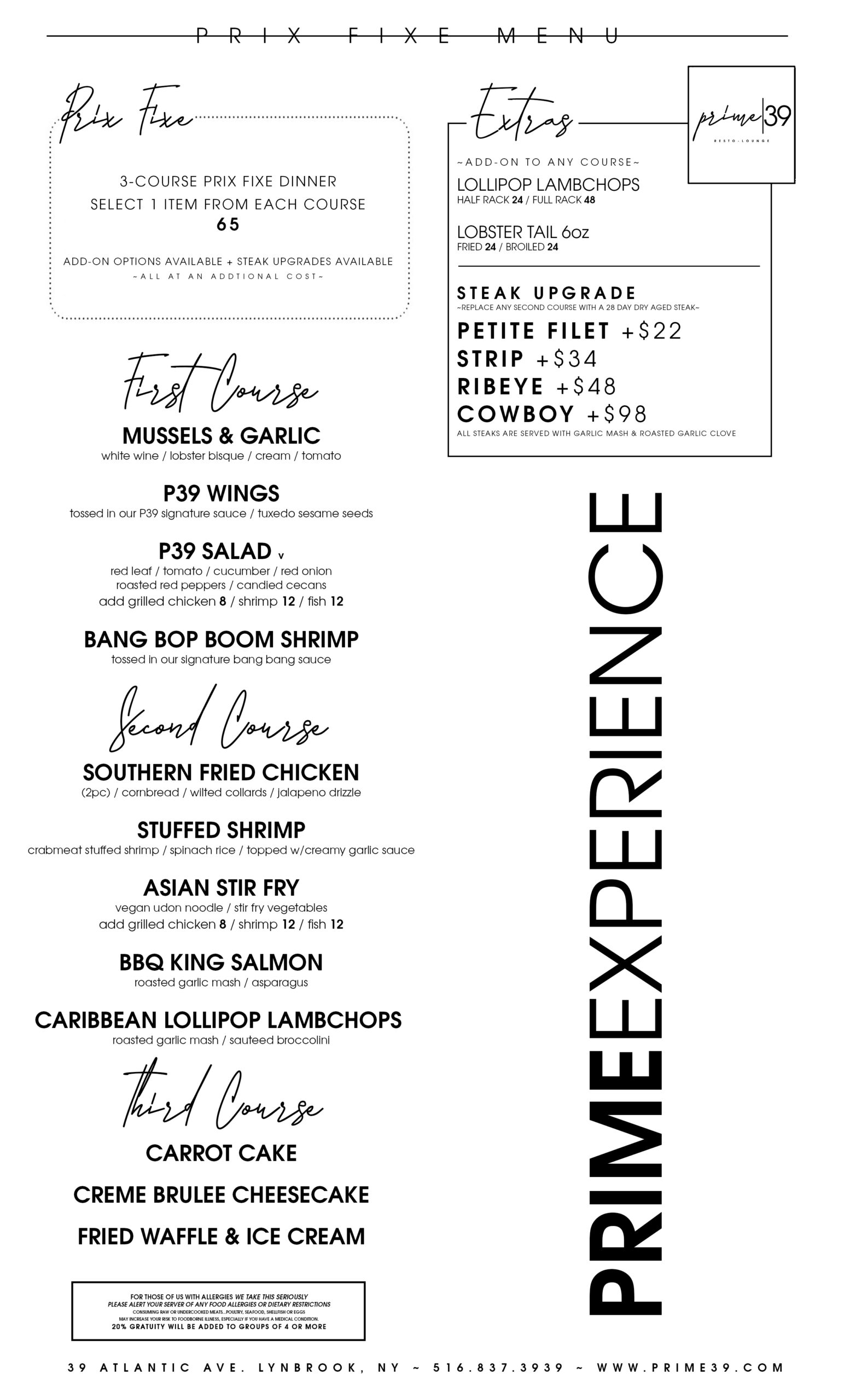 All steaks are 28-day dry-aged USDA Prime, served with roasted garlic clove & prime steak sauce